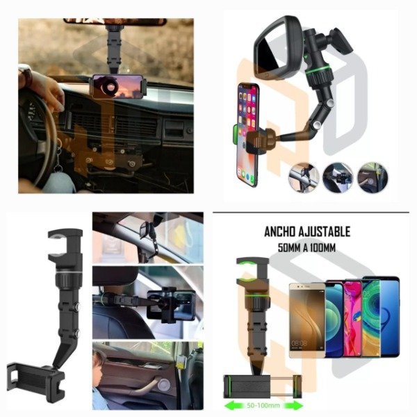 Soporte de celular para auto multifunción. Se cuelga en el espejo retrovisor